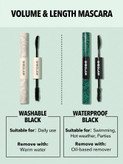 این ریمل با دو فرمول مختلف یعنی قابل شستشوی آسان و مدل ضد آب طراحی شده است. مدل قابل شستشو به دلیل امکان پاکسازی سریع و راحت برای مصرف روزمره کاملا مناسب است. این مدل به آسانی تنها با اب ولرم پاک می شود. مدل ضد اب نیز به دلیل ماندگاری بسیار بالا در شرایط شنا، هوای گرم و مهمانی طولانی کاربرد دارد. برای پاک کردن این مدل به میکاپ ریموور بر پایه روغن نیاز است.
